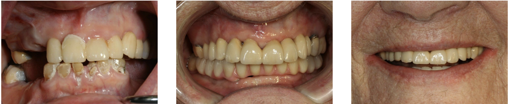 Full arch dental implants provide patients with brand new teeth by utilizing a permanent, titanium-reinforced bridge that can be secured with four to six dental implants. This allows us the flexibility to strategically place the implants in the areas in which the bone is most dense, reducing our need for bone grafting and other supporting treatments. Please keep in mind that we can help people in nearly any situation because of our team approach to Full Mouth Implant Cases.
